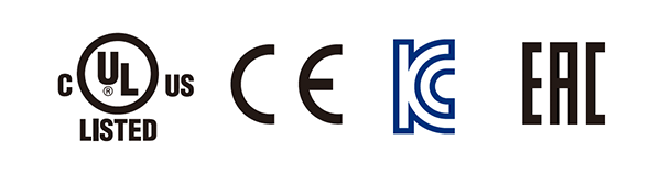 In consideration of high-performance and environmental, global standards it also compiles with UL, cUL, EC Directive (CE Mark), Korean Radio Law (KC Mark) and supports EAC Certification.